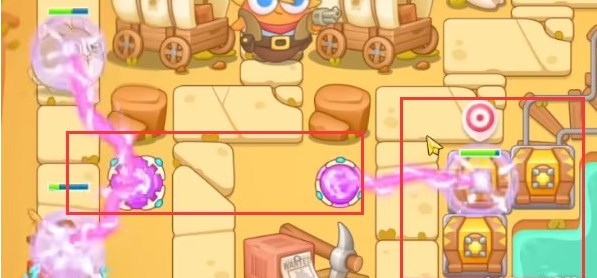 3、按照序号顺序放电池炮和火箭炮,升到三级,轨道上的道具需要手动移动清理道具哦。
