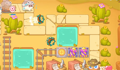 2.金币充足之后在左边放上回旋镖来攻击兔子, 导弹炮用来攻击障碍物。