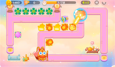 1.在最上方的空缺放置电风扇并升级,锁定障碍物攻击的同时也可以打到怪。