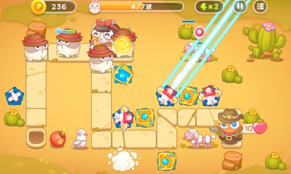 5、升级飞机和卡牌的炮台属性,加强防御能力,以面对后面几波兔兔的猛烈进攻。
