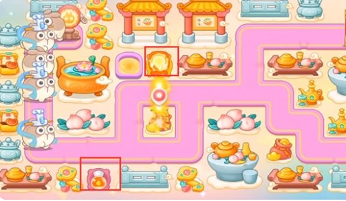 1、首先,第一波我们需要在中间位置放置一个满级的火瓶来打钱袋子,下面放置一个喷火器来清理兔子,钱袋子打完之后我们继续清理桌子,喷火器可能秒不了兔子,适当我们需要火瓶锁定兔子打(第一波我们尽量卡一下兔子留给我们清图的时间多一点);