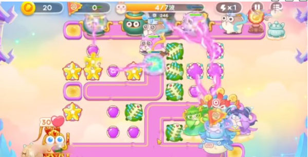 4、之后几波会有仙女兔,还有那个罐子里的兔子,玩家要小心,在起点处可以放毒针,中间的魔法球尽量都飞升满级,神仙不是太难,全程可以锁头。