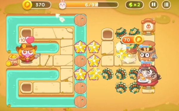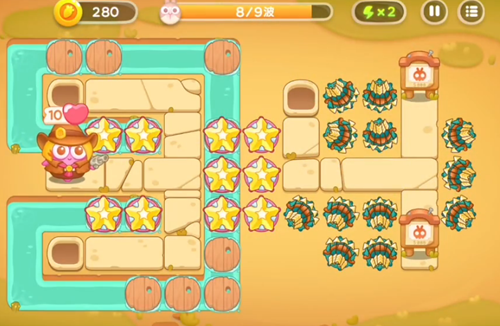 红色兔子多重箭锁定攻击,星星塔在后面补上一定的伤害。