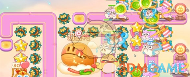 5、最后一波,具体摆放如下(首先我们是需要卡着最后一个仙女兔子,我们需要不断的买和卖防御塔,利益最大化最后我们需要在木鱼两侧放置五角星和多重箭,一方面是最后清理兔子,一方面是木鱼)