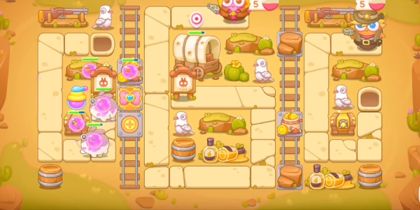 1、开局在左侧铁轨上建1个满级蝴蝶炮,既可以消灭兔子也可以清理障碍物,最左侧建1个毒气瓶可以减速兔子。