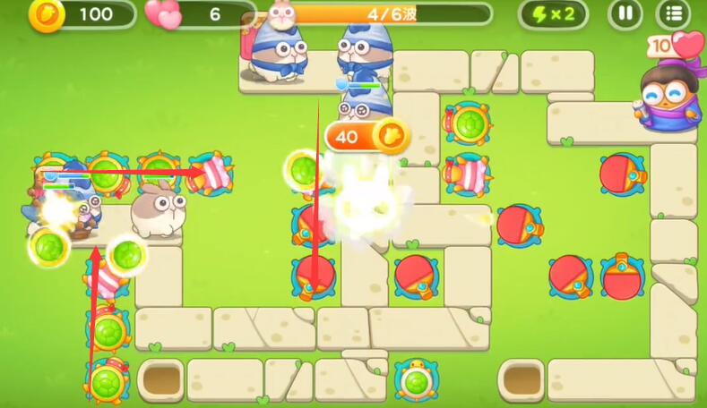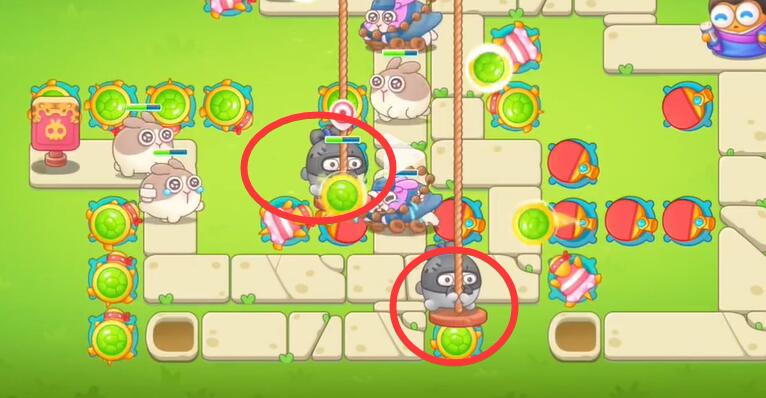 1、玩家进入游戏关卡后首先在左下出口这里放上乌龟来清怪,右边放上乒乓球牌清理建筑。