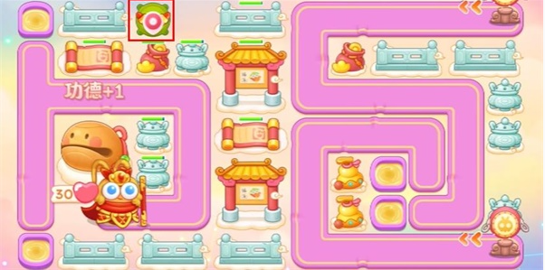 3、我们把周围的道具清理干净之后,就继续建造上道具升到满级,敲打木鱼。