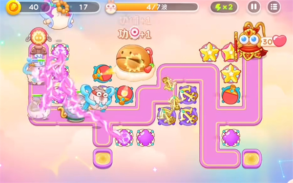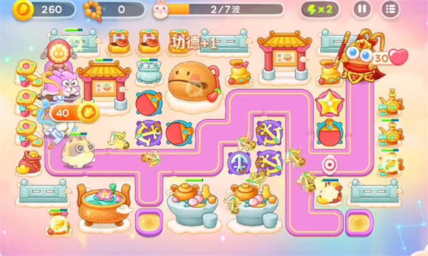 3、第四波能够将障碍物全部清除,锁定木鱼进行输出,优先将魔法球进行升级。