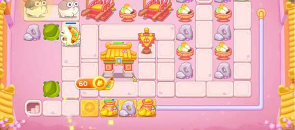 5、按照如下图所示的位置来摆放炮台即可通关。