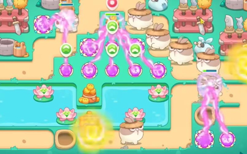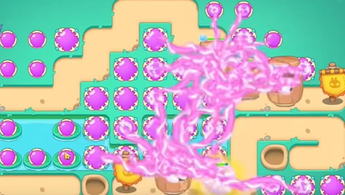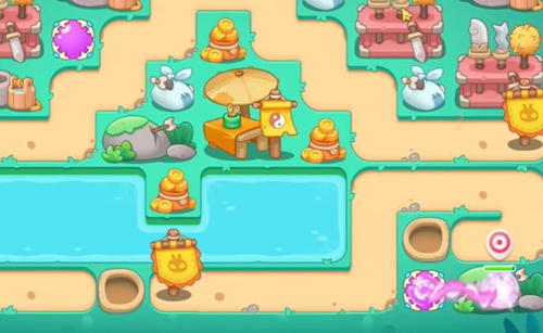 1、玩家前期使用魔法球炮台放到游戏里面有空位的地方,用来清理障碍物。