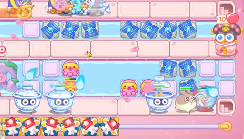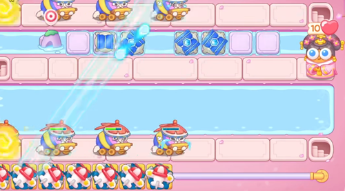 2、在上方水面上的格子建造冰桶,来减缓敌人的移动速度。