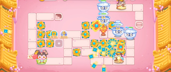 4、在左侧萝卜周围建造卡牌来防止漏怪。