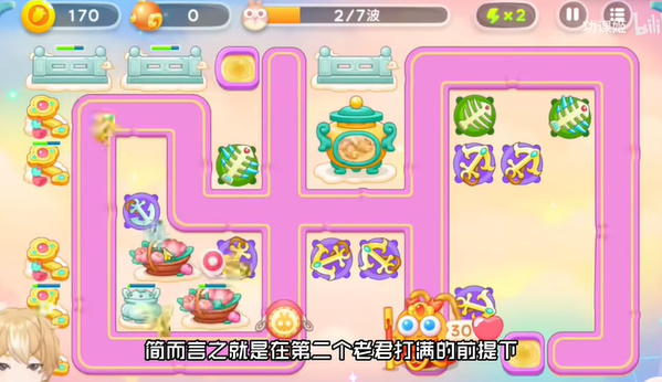 1、开局的时候放上一个鱼骨然后右边放上一个船锚,这个两个就可以应付前期的兔子了。