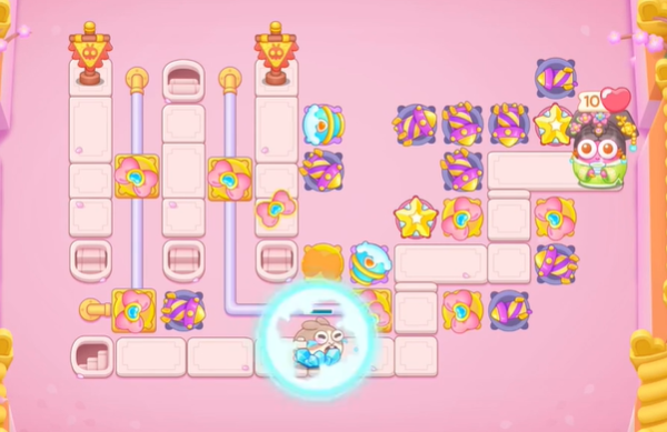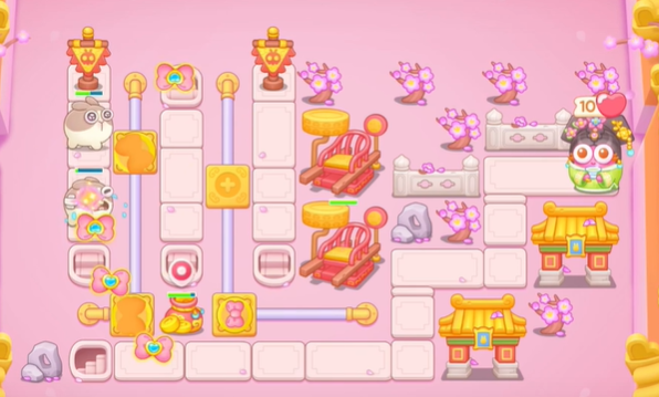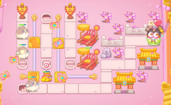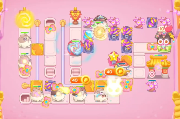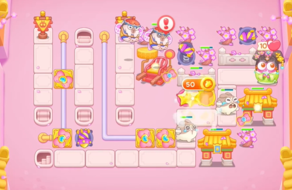 3、玩家可以在后方建造蝴蝶结和星星,来防止漏怪和后面会出现的飞天兔。