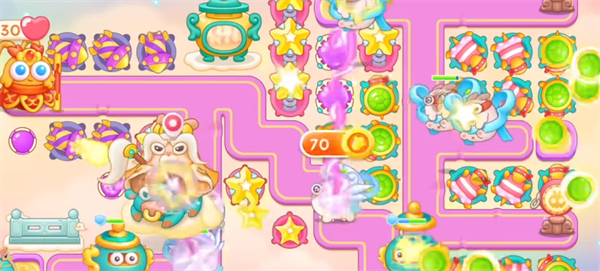 2、待障碍清除后,在屏幕上空余位置继续建造五角星炮台和导弹炮台。
