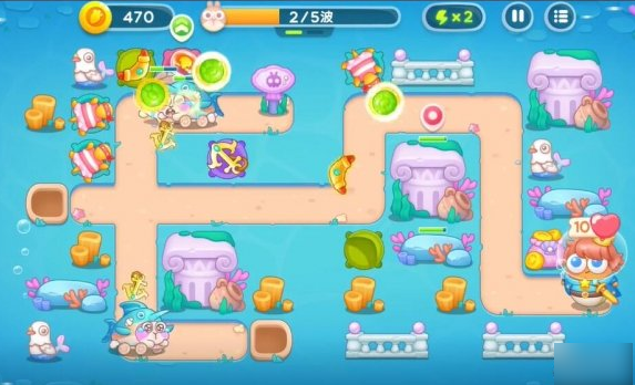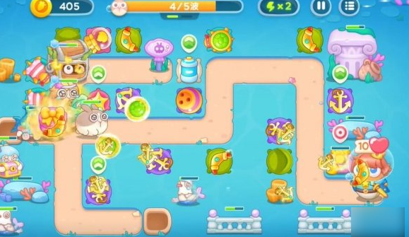 保卫萝卜4海的闺女50关共有两个场景地图,主要是需要建造水雷、鸡蛋、乌龟、船锚等。