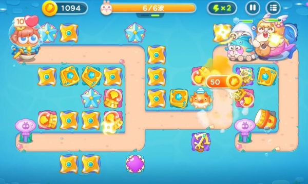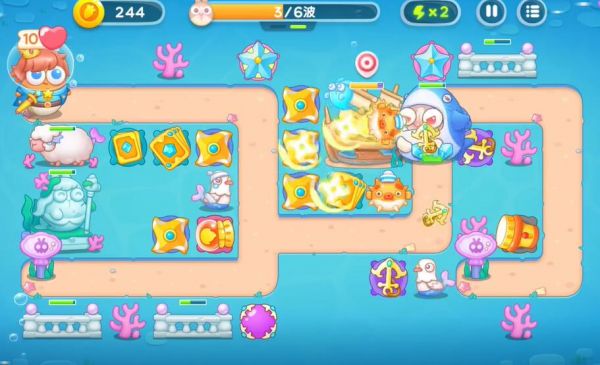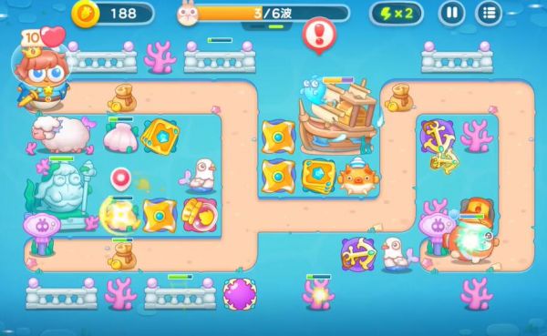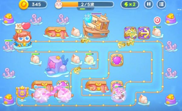 4、制作更多的船锚整理掉全地图的障碍物,随后打败一切的兔子,进入下一轮的塔防。