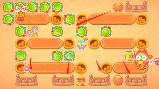 2、没有打怪的炮台优先用来清理道具,出口这里的道具会自己清理完,我们只需要注意右边和下面的道具。