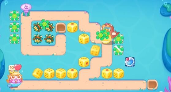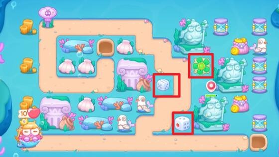 1、开局先建造骰子炮塔和四叶草炮塔,将四叶草升到满级,然后升一个骰子到2级,先拆除旁边的小障碍物,和右下角的大障碍物。