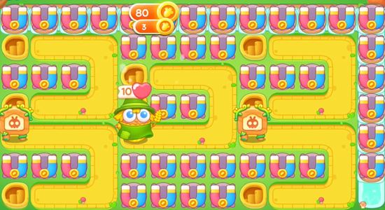 1、保卫萝卜4头等大事第10关开局先在萝卜上面放置一个满级磁铁,等待上面河水中出现木桩我们继续放置磁铁,然后清理终点附近的道具。