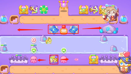 保卫萝卜4阿波与魔法宝藏第41关怎么通关?阿波与魔法宝藏第41关看上去很难,只有两段很短的路线,其实每条线兔子都会走两遍所以不用担心,这里我们可以使用的炮台有冰锥、拳套、船锚、手电和摇杆,下面为大家带来第41关通关攻略。