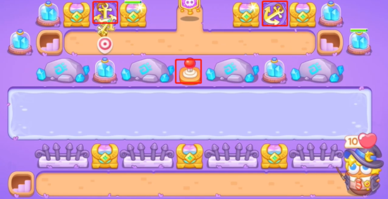 2、宝箱打掉里面给的是风扇,然后把下面的石头全部打掉,之后我们放置冰锥利用冰锥把下面打出位置。
