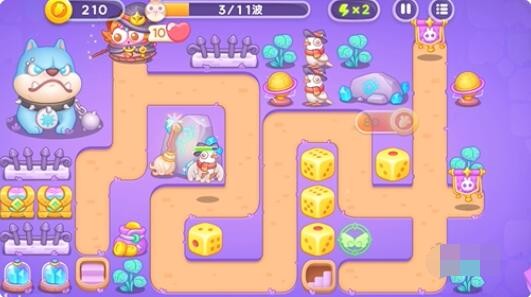 1、阿波与魔法宝藏第30关主要使用骰子和鱼骨这两种炮台。