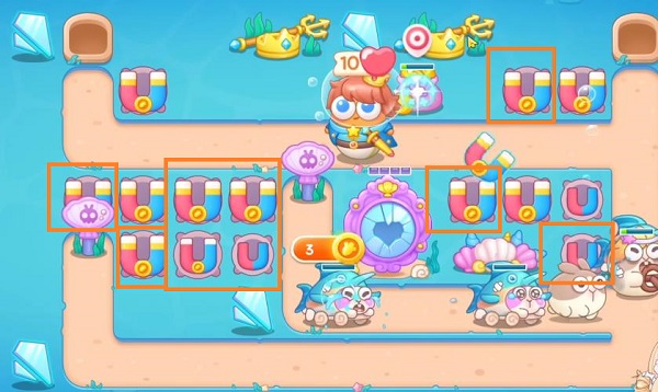 2、然后在地图左上角造一个磁铁打下面的道具,有金币后在两边各造上磁铁。