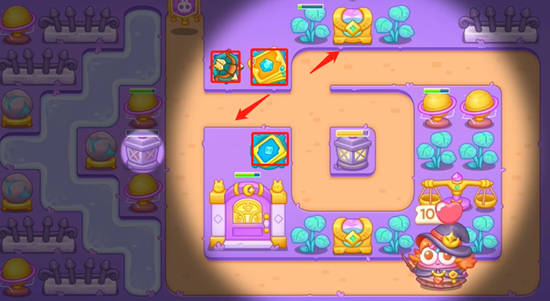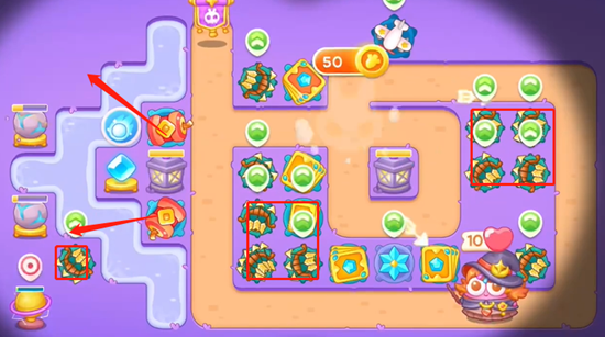 3、放置多重箭把左边这里打掉,然后放置炮仗,沿线我们也要多放置多重箭曾家山伤害能力,宝箱尽快打出来。