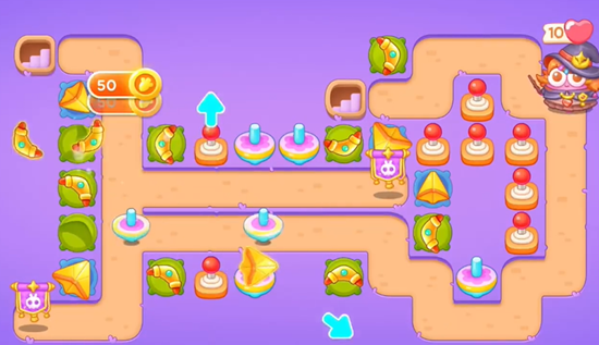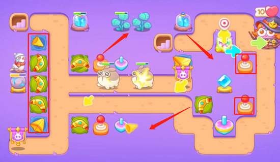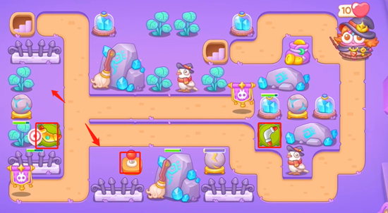 3、这关的道具还是比较多的,打掉小道具之后放置炮台,清理掉剩下的道具拿到全清,这里注意有怪打怪。
