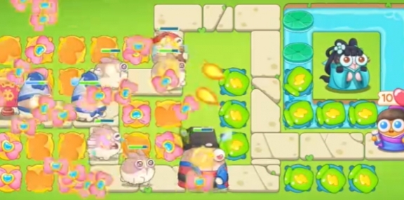 1、本关主要使用蝴蝶结和瓶子这两种炮台。