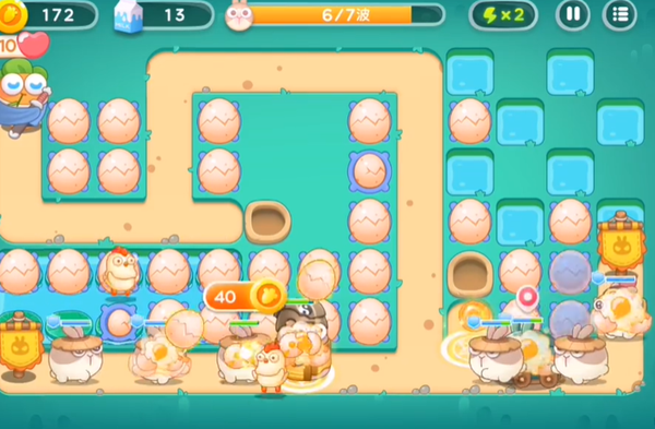 5、第六波的时候我们可以达成道具全清,开始攒钱放置鸡蛋壳。