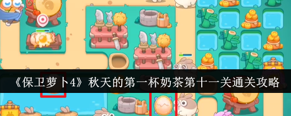 保卫萝卜4秋天的第一杯奶茶第十一关怎么通关?保卫萝卜4秋天的第一杯奶茶第11关可以选择的炮塔较少,最简单的过关炮塔是鸡蛋壳,只需要鸡蛋单炮塔就可以轻松过关了,下面小编就给大家带来秋天的第一杯奶茶第11关攻略。