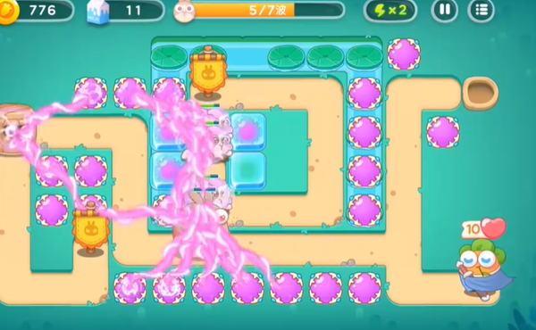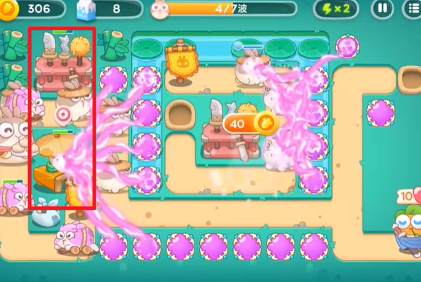6、当道具全部清理完后,就开始部署最后的输出炮塔。在这个过程中,记得要及时打掉被冻结的炮塔上面的冰块,以确保炮塔能够正常发挥作用。这样的操作可以保证我们在关键时刻拥有足够的火力,顺利完成关卡。