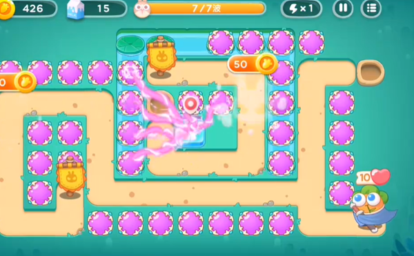 2、拆道具所获得的钱要在右边继续放置炮塔或其他设施。因为这里距离怪物比较远,所以我们有更多的时间在怪物到来之前多打掉一些道具。这样可以为我们积累更多的资源,为后续的战斗提供更好的保障。