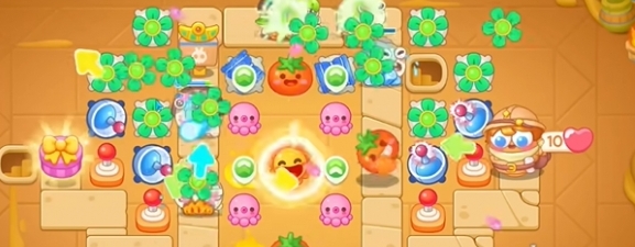 6、将宝箱清除后会获得多个小章鱼,用左侧的风扇清理道具。