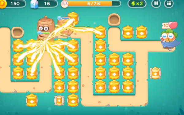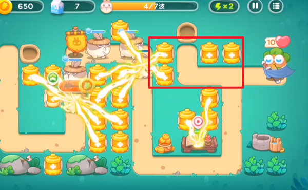3、拆掉几个大道具之后,我们的压力就会小很多,开始布置炮塔来度过中期。