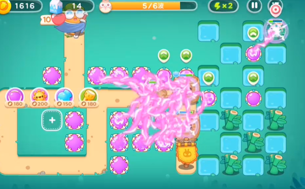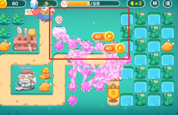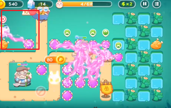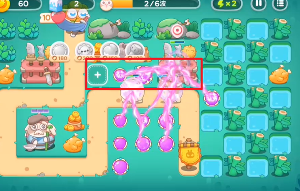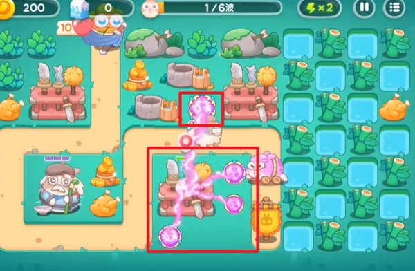 1、游戏开局的时候,在上下两个地方分别放置魔法球炮塔,并且要把位于上面的那个魔法球炮塔升到满级。这样做的目的是为了在游戏初期构建起初步的防御体系,满级的魔法球炮塔能够拥有更强的攻击力和更广的攻击范围,为后续应对怪物和拆除障碍物等操作提供有力的保障。