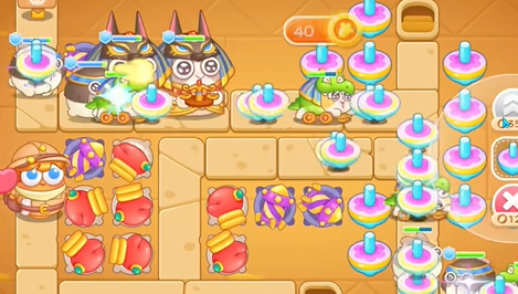 4、在右侧建造多个陀螺炮台将其满级,用来清理附近的道具