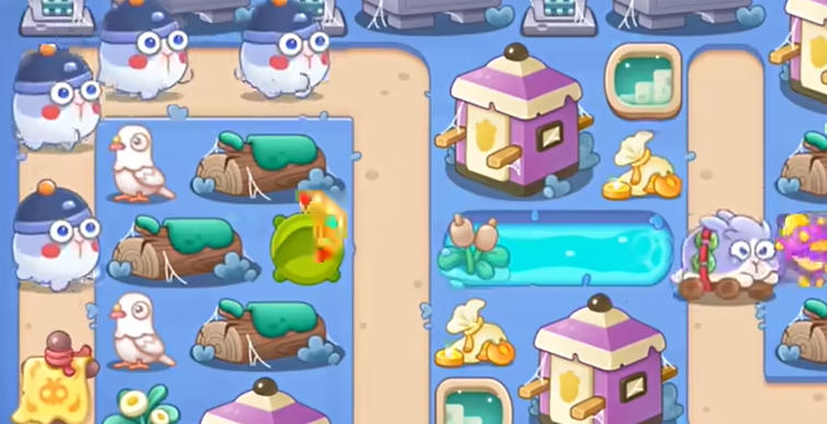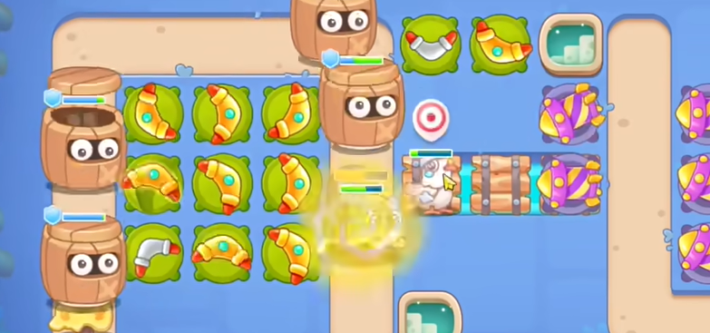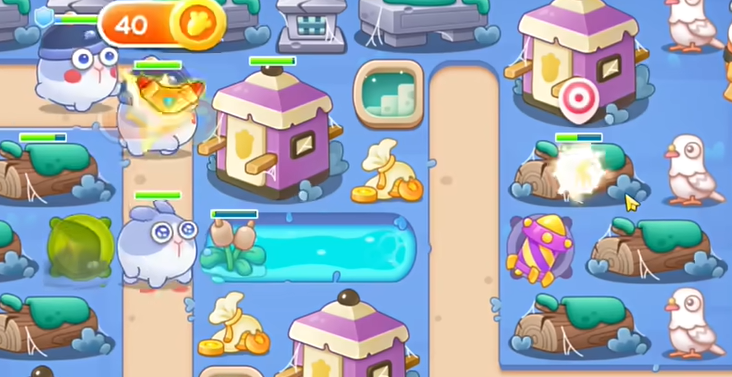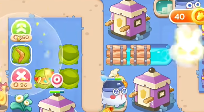 2、使用蝴蝶结清除周围的道具后,在左侧建造多个蝴蝶结炮台