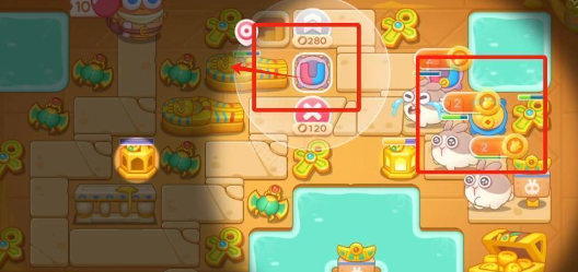 1、保卫萝卜4法老归来89关是迷雾关卡,开局现在兔子出生点附近建立元宝攻击兔子,然后在旁边建立磁铁攻击法老像。