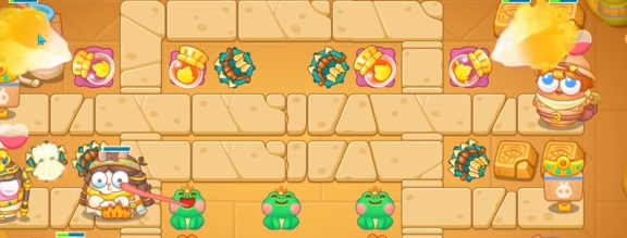 4、继续在下方补充两个满级青蛙,清理周围的道具。