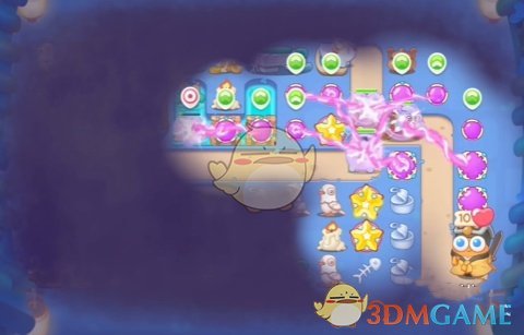 6、继续在中间补充多个满级魔法球,优先清除阴影处的道具。