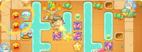 5、在地图中间建造两个满级星星,清理右上角的道具。