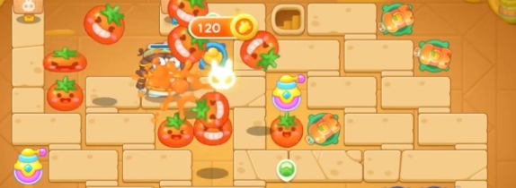3、在中间区域建造一个番茄并升级,继续清理道具。