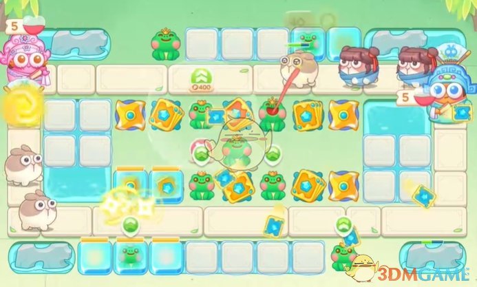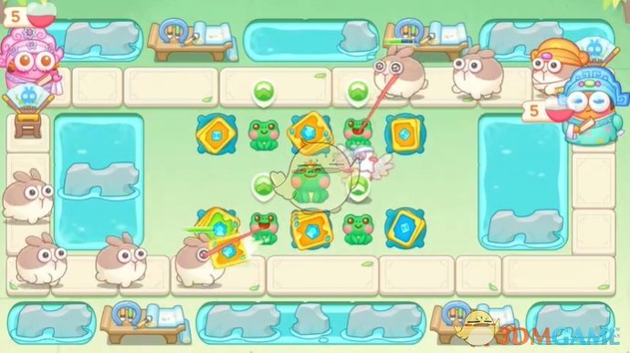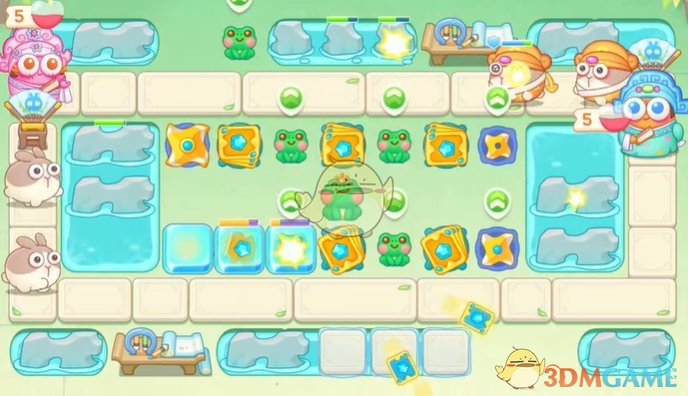 1、首先在下面放置卡牌和青蛙,用来清理附近的道具;