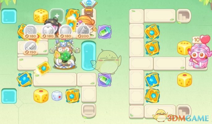 1、首先在左侧放置卡牌和骰子清理道具,萝卜下面放置骰子清理怪物;