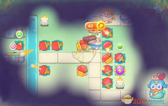 3、通过攻击蜡烛消除部分的迷雾后,继续在空位上补充球拍炮塔;