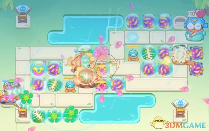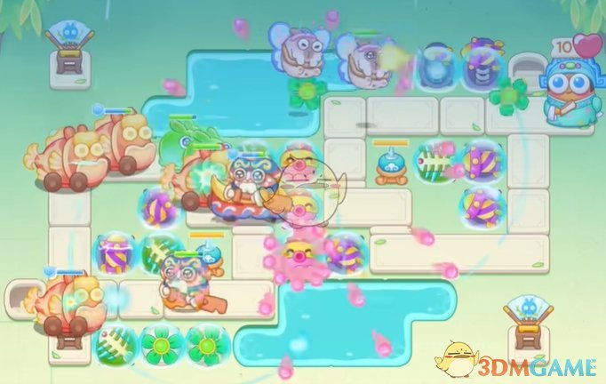 2、这一关的怪物比较多,中间的炮塔可以清理怪物,左上方的炮塔用来清理道具;