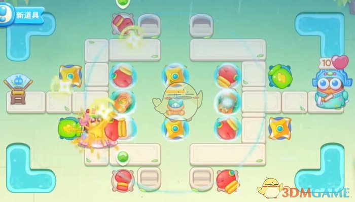 4、在攻击的同时需要将场上的炮塔升级,然后将道具清理掉;